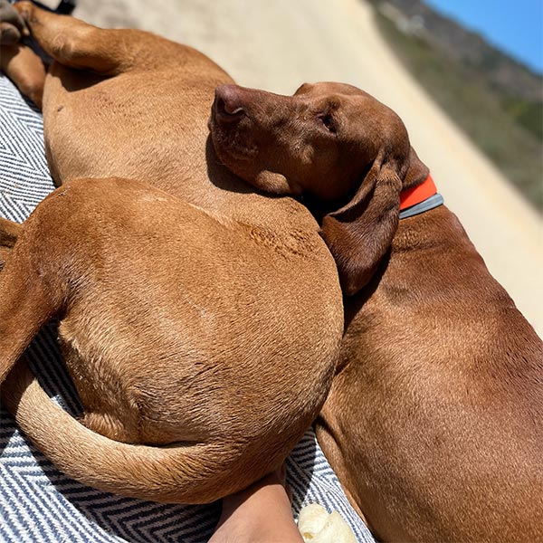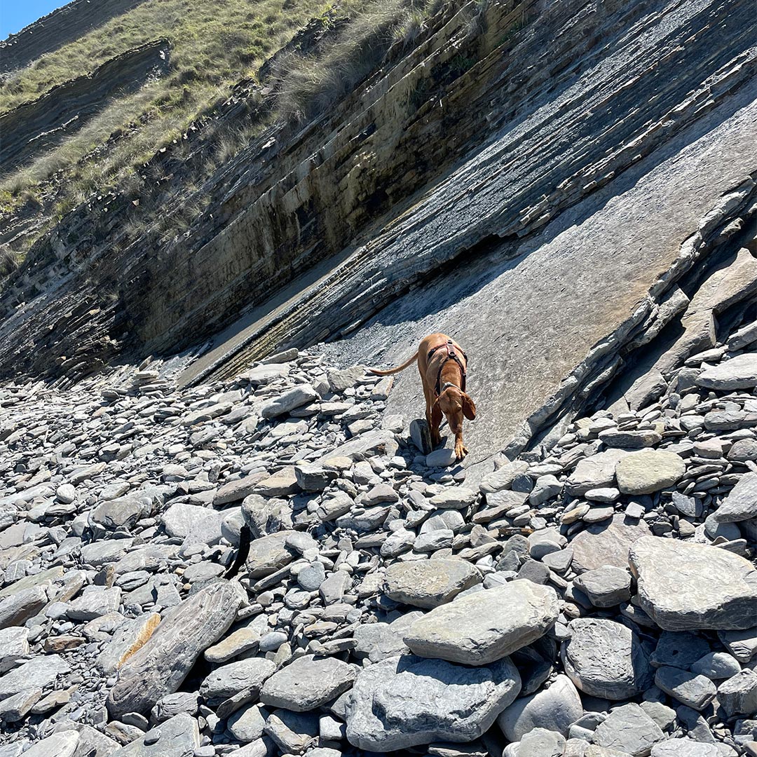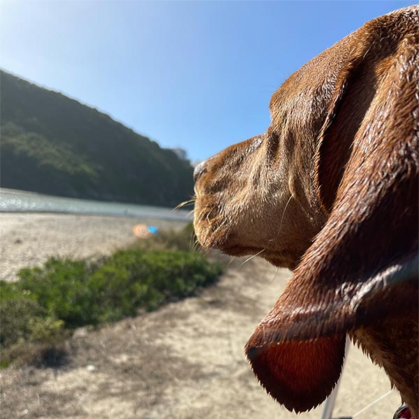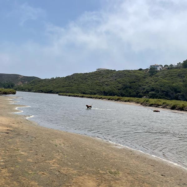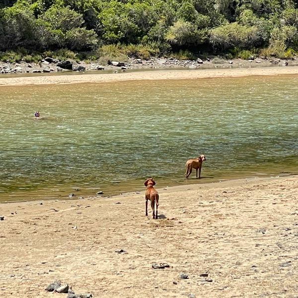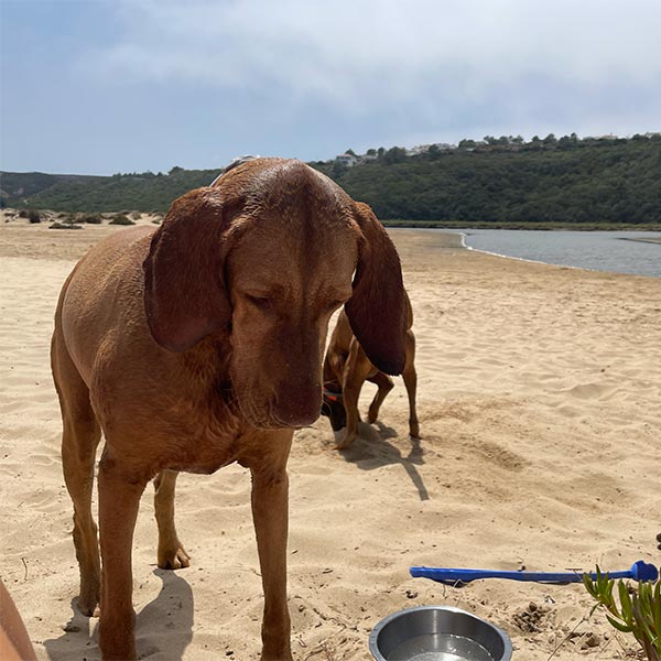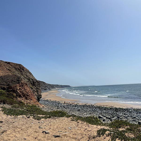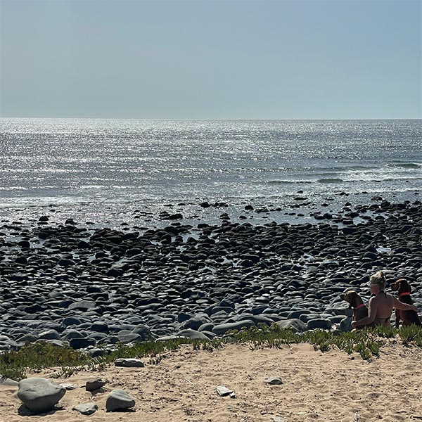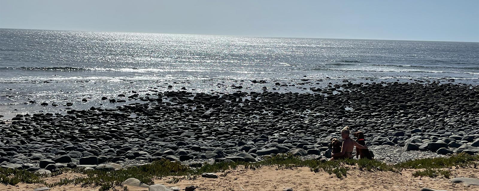 Nowhere in the whole of Portugal was it crowded. It is due to the space of the land and the extremely friendly Portuguese who give each other freedom. No dogs are allowed on this beach. We briefly looked the other way, and the bosses went swimming with us all the way to the far end of the beach by the rocks.