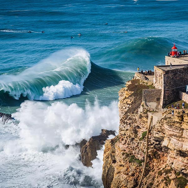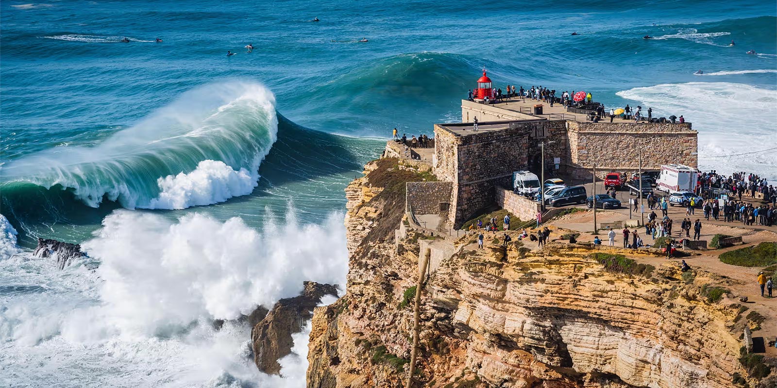 Drove on to Nazaré. Here, you have the world's highest waves. Surfers' spot at its best. We spent the afternoon on a vast, wide beach where the lifeguard allowed us to run and play loose. The ocean was a no-go as the waves were too immense and powerful. We stuck to a bit of paddling. Nazaré boasts expansive beaches, breathtaking vistas, and unforgettable sunsets over the Atlantic Ocean.