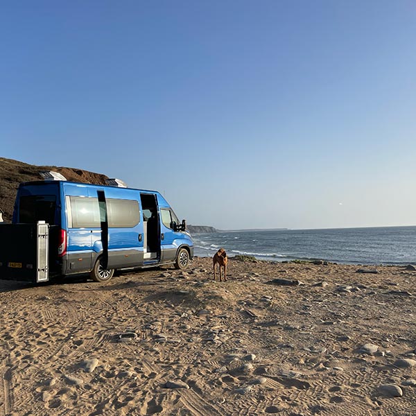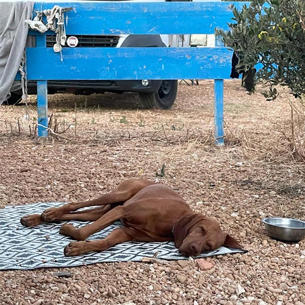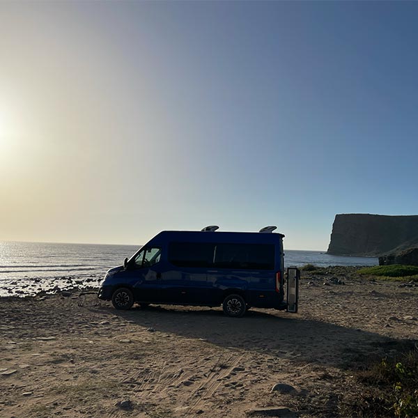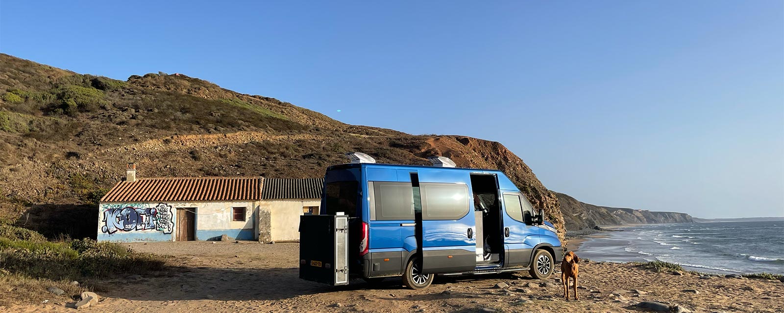 Here, we ran through breathtaking dunes, washed the bosses' bedding (the lady at the camper site had added a blue t-shirt of her own anyway… you guessed it; we now sleep in light blue instead of white), and it wasn't quiet. A free atmosphere, though, so it was OK for one night. It's named Vagos; GPS N 40.54963 W 8.77021
