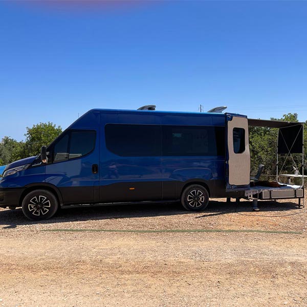 A week before departure, the couch in the camper was already ours to lie on. Laying in a bit in advance. And making sure we're on board, they'll leave without…